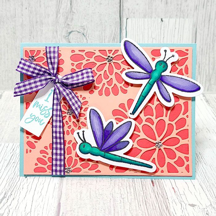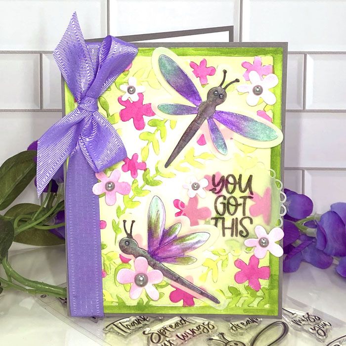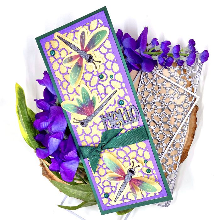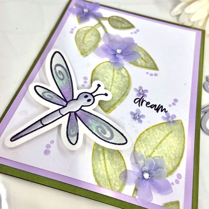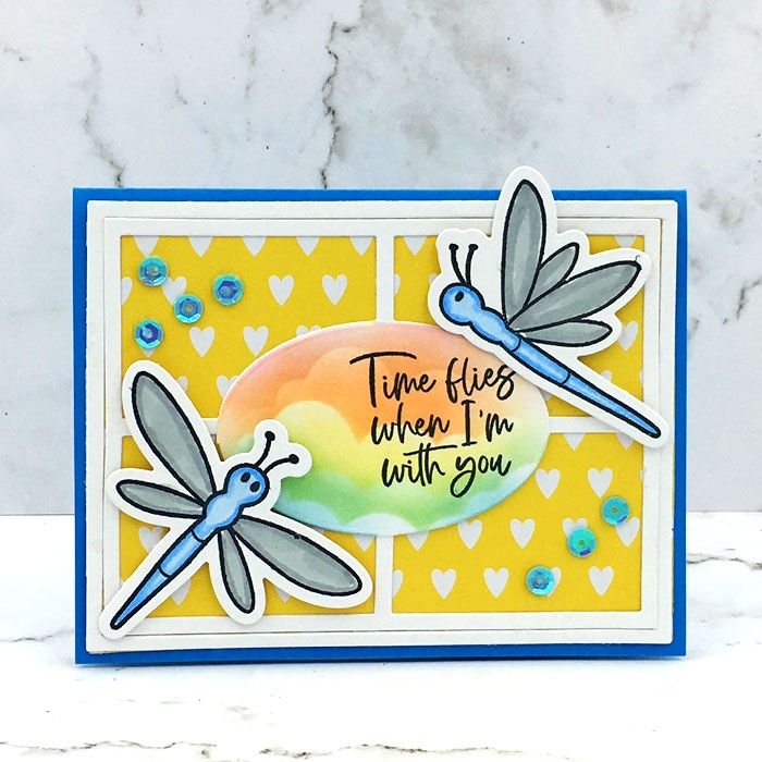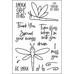 This clear stamp set includes 15 stamps on a 4×6 inch sheet. The largest dragonfly measures approximately 2.8 x 2.3 inches.