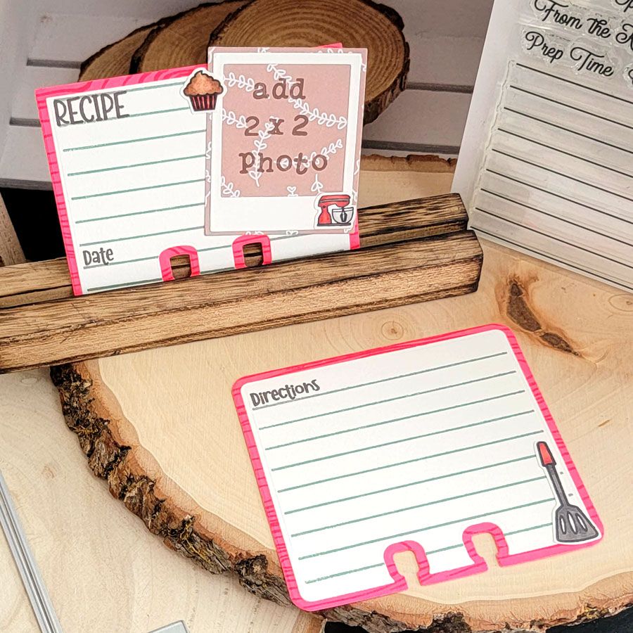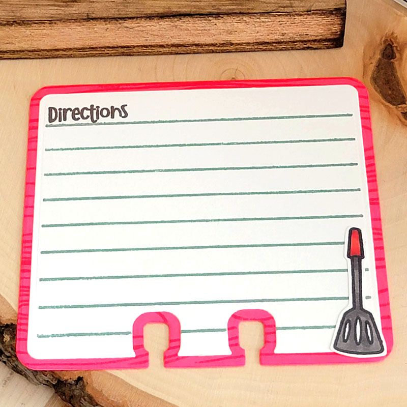 This fun stamp set includes a lined stamp to record your favorite yummy recipes. Choose from a variety of stamps in fun fonts to customize your recipe cards!